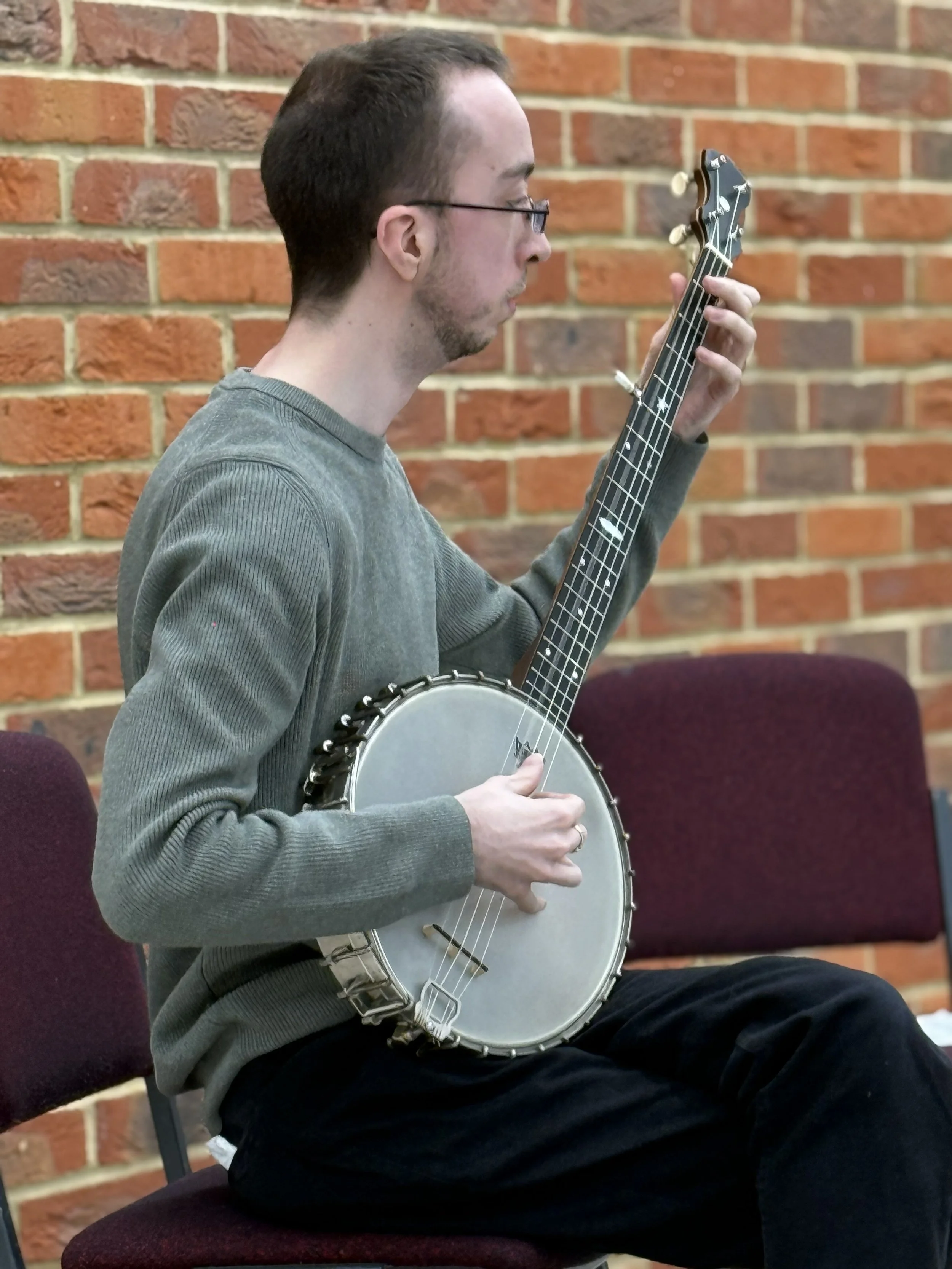 Although it was already in working condition when acquired, it still benefited from some careful adjustments. The instrument was taken apart and sympathetically restored: the original friction tuners were lubricated with beeswax, the bridge was replaced, the head was retuned, and the pot tightened. Interestingly, even the tools had to match the era—modern flathead screwdrivers proved too thick, so Victorian screwdrivers were needed to do the job properly.